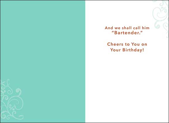 And we shall call him “Bartender.” Cheers to You on Your Birthday!Features: