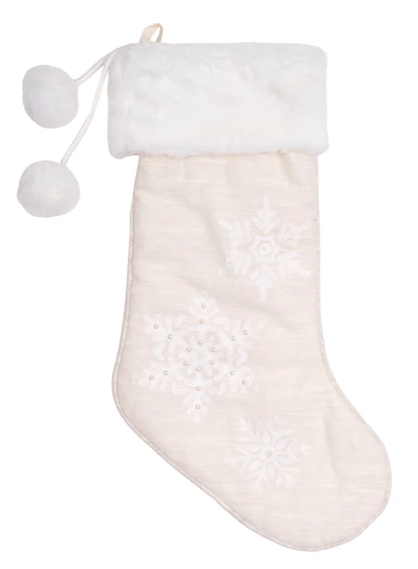 Snowflake Stocking - Embrace the beauty of a winter wonderland with the White Christmas Snowflake Stocking. This elegant stocking features intricate embroidery and delicate embellishments, with uniquely designed snowflakes that capture the magic of a snowy Christmas.