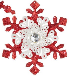 5.25" RED AND WHITE SNOWFLAKE ORNAMENT