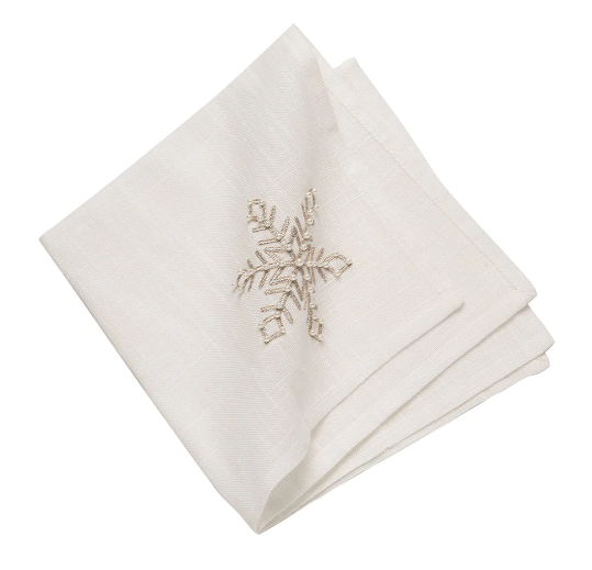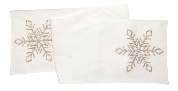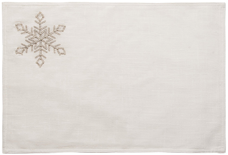 Bring a magical winter scene inside your home with this stunning and sophisticated Champagne Snowflake embellished tabletop collection. Featuring a snow-white background embellished with a single, silver snowflake, this collection is sure to make your dinner parties feel like a winter wonderland.
