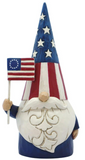 Jim Shore's Gnomes Around the World collection is a whimsical celebration of symbols and customs from nations near and far. The American Gnome waves Old Glory while wearing a colorful hat festooned in Stars and Stripes.