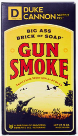 Our new Big Ass Brick of Soap – Gun Smoke attempts to capture that moment. The whiff you’ll get isn’t exactly metallic Cordite; rather, notes of smoked wood, bourbon vanilla, and charred leather combine to form a rich, slightly smoky scent that reminds you of a successful morning spent alongside your favorite fellow sportsmen.