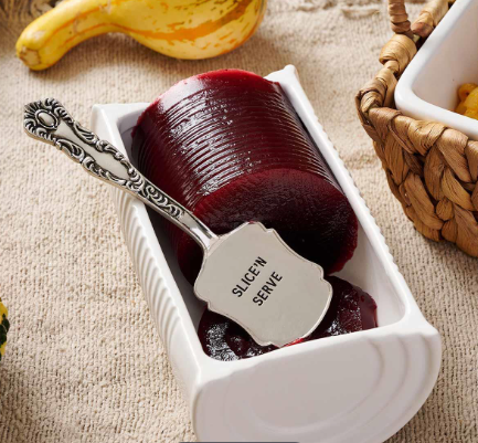 2-piece set. Ceramic can textured dish features debossed sentiment. Arrives with silverplate sentiment spatula.