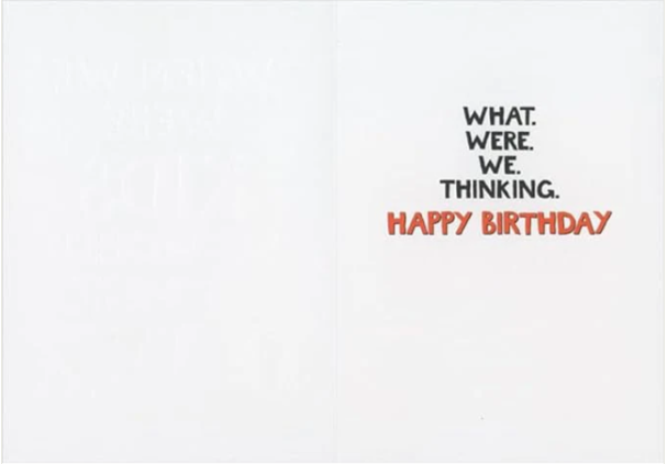 Inside:  What. Were. We. Thinking.  Happy Birthday