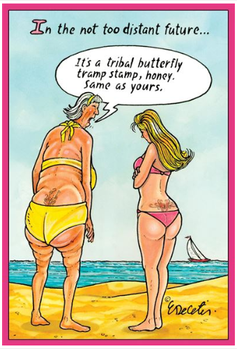 Front: In the not too distant future... It's a tribal butterfly tramp stamp, honey. Same as yours.