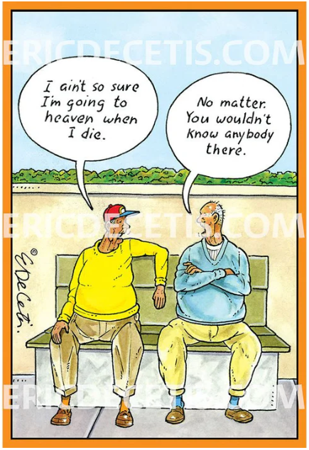 Outside Text: I ain't so sure I'm going to heaven when I die. No matter. You wouldn't know anybody there.