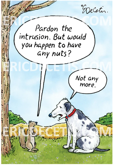 Outside Text: Pardon the intrusion. But would you happen to have any nuts? Not Any More