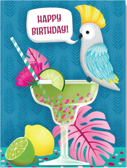 Card - LT/Birthday - Bird on rim of margarita