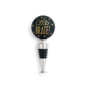 Festive beverage stopper celebrates the cocktail hour in fashionable style. Celebrate memorable occasions with colorful flair, perfect for hostess gifts. This chic bottle stopper will not only be a perfect pick to enhance the look of your bar but will also make for a wonderful gifting option DEMDACO Celebrate Bottle Stopper from Design Toasting Collection Resin, Paper, Iron & Rubber. Measures 2 inches W x 4.5 inches H