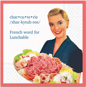 This food themed napkin will bring laughter to the party! Featuring retro illustration and wit. ”French word for Lunchable”