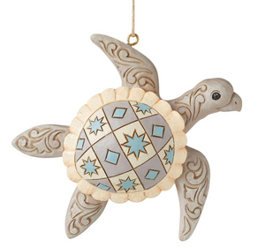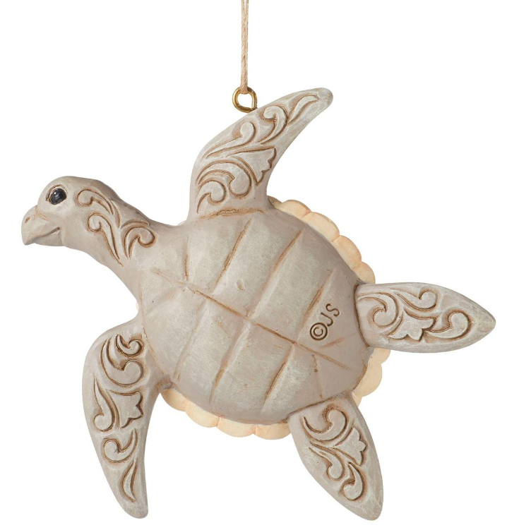 With rosemaled skin and a star patterned shell, this Jim Shore imagined sea turtle ornament makes a lovely addition to any tree. Surfing through branches, this smiling 3.5 turtle is a charming reminder of seaside serenity in any climate.