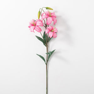 This polyester floral features three colorful blooms with two buds, for a look that is realistic and genuine. The long 35.5" stem makes it versatile to clip to any size for an arrangement.