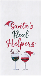 Add a touch of holiday cheer to your kitchen with our Santa's Real Helpers Flour Sack Towel. This whimsical towel features the playful phrase above two festive glasses of wine—one designed to resemble a cheerful reindeer and the other dressed up like Santa himself. Crafted from soft, durable flour sack fabric, it’s highly absorbent and perfect for all your cooking and cleaning tasks. This towel is a fun and charming addition to your holiday decor, making it a perfect gift for wine lovers and holiday hosts. Celebrate the season with this delightful and functional kitchen accessory!