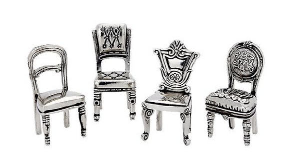 • Four vintage chair place card holders are includes; each with a unique design