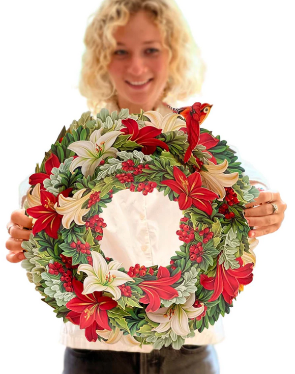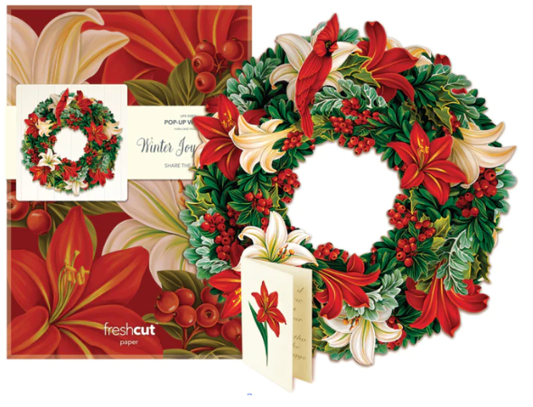 - Includes: wreath, matching blank note card and festive mailing envelope